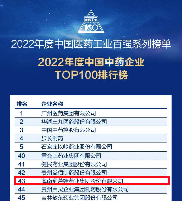 Z6尊龙凯时药业集团连续4年荣登“中国中药企业TOP100排行榜”,排名上升至第43位